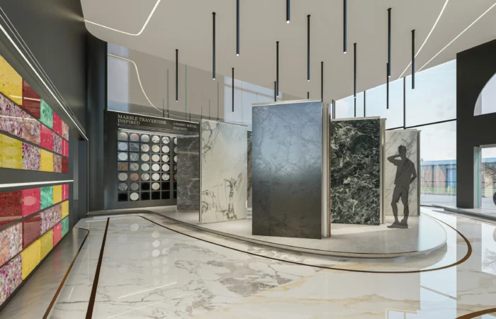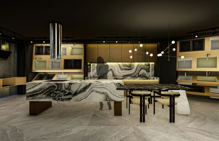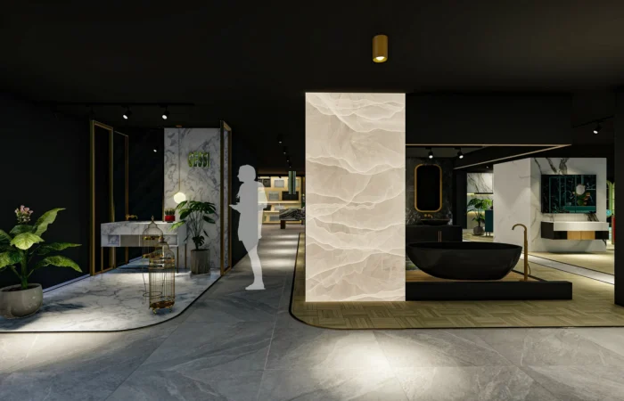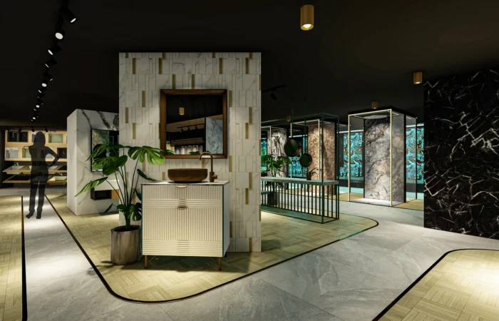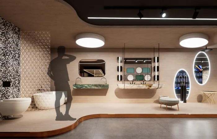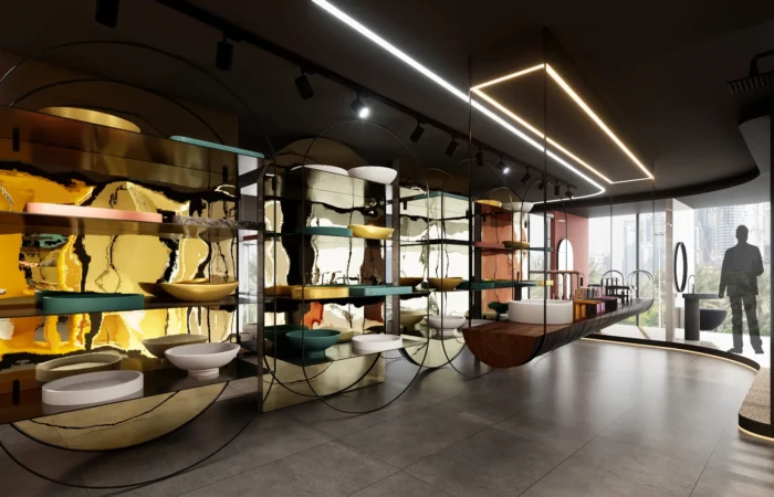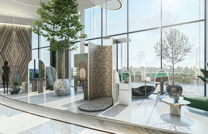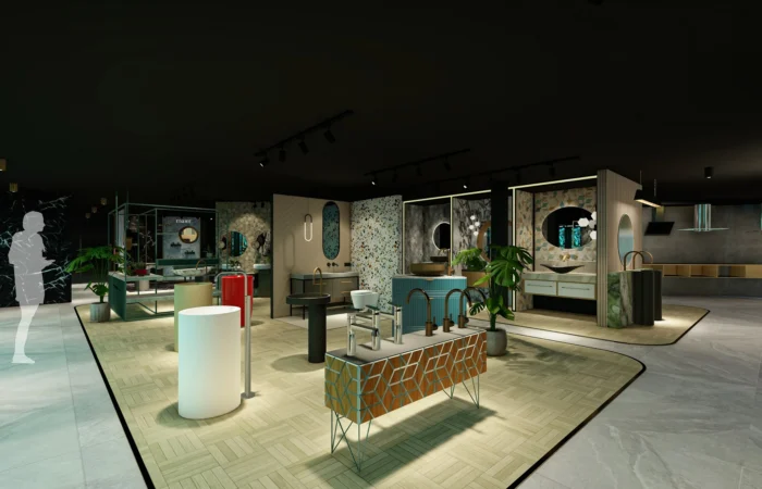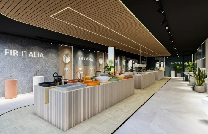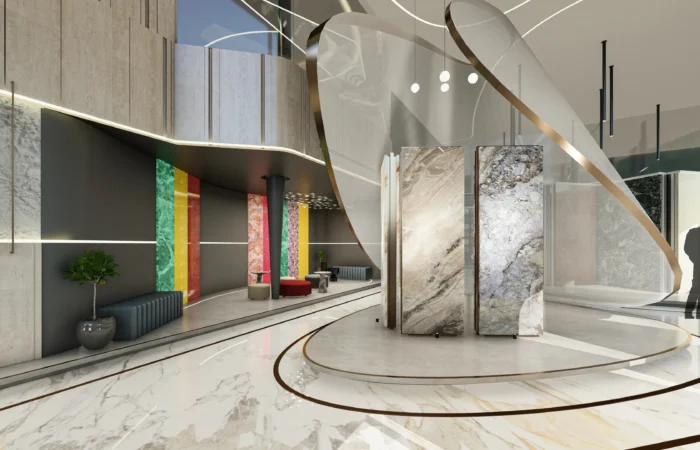 Step into this experience centre and be transported to a world of opulence and artistry. Marble and sanitary wares take centre stage in an exhibition-like space that is a true feast for the senses. Set within a grand space marked by soaring ceilings, majestic walls, and flowing organic shapes, this centre is a study of contemporary elegance. The carefully curated collection of high-end products is a testament to refined taste and discerning craftsmanship.
