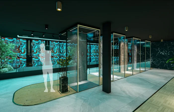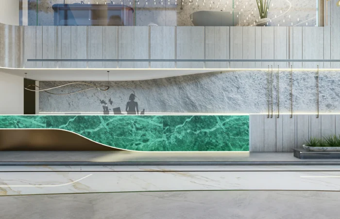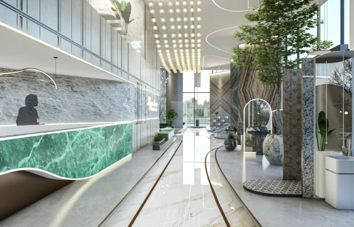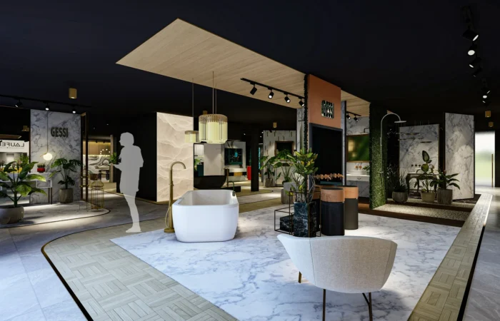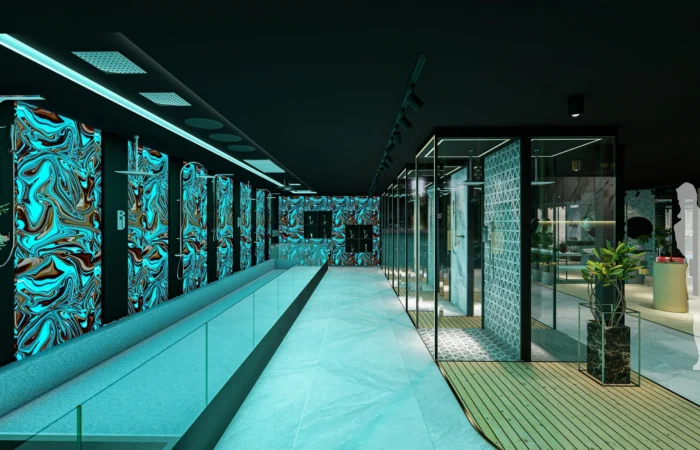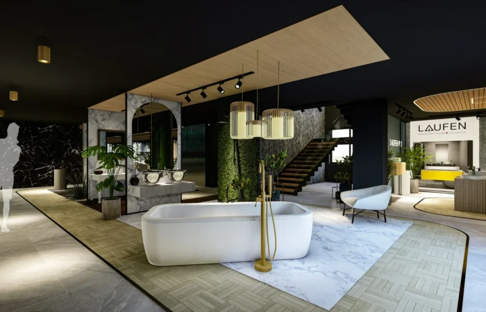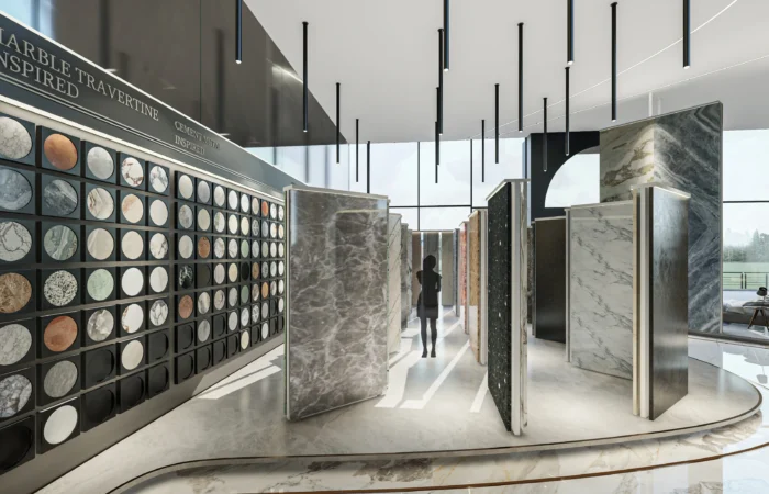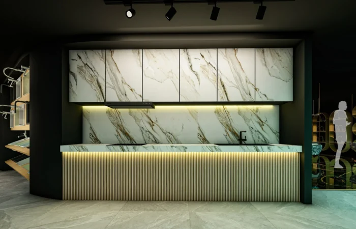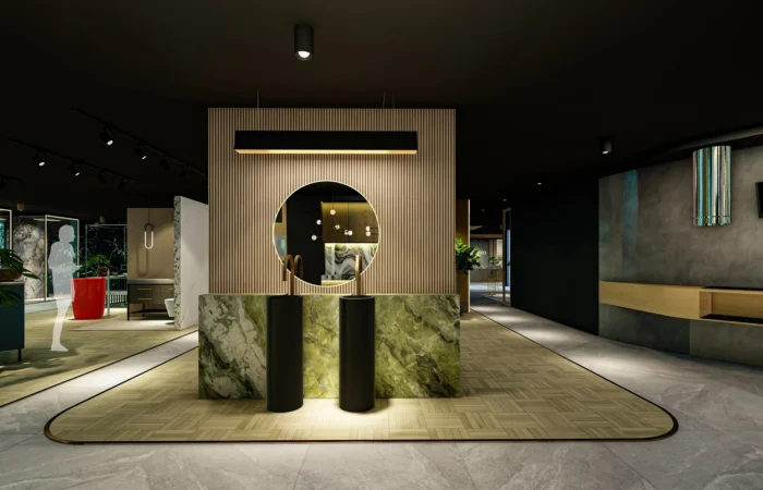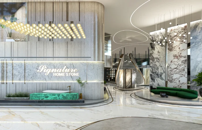 Step into this experience centre and be transported to a world of opulence and artistry. Marble and sanitary wares take centre stage in an exhibition-like space that is a true feast for the senses. Set within a grand space marked by soaring ceilings, majestic walls, and flowing organic shapes, this centre is a study of contemporary elegance. The carefully curated collection of high-end products is a testament to refined taste and discerning craftsmanship.