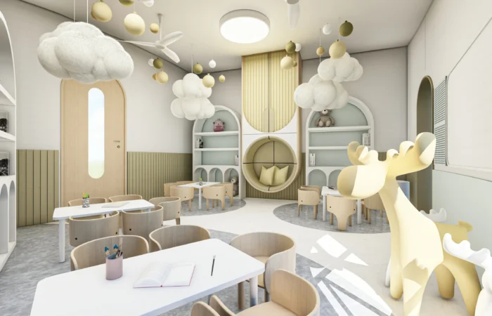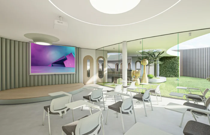 The shapes and colours are carefully curated to enhance the learning experience of the children, resulting in a space where architecture transcends mere shelter and aesthetics.